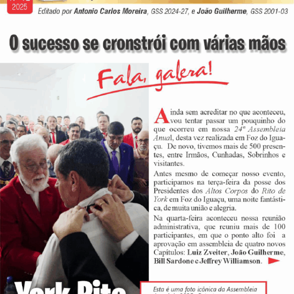 Traduzir o antigo ritual dos Cavaleiros Templários para o português, um projeto coordenado por João Guilherme C. Ribeiro, foi uma responsabilidade colossal e, por vezes, cômica. Não era só passar palavras de um idioma para outro; era uma verdadeira “gincana cultural”. Enquanto os americanos têm mais de dois séculos de tradição oral e instrutores de sobra, a equipe brasileira precisou suar a túnica para adaptar o texto à nossa realidade sem perder a essência. O primeiro desafio foi bancar o detetive de palavras. O texto estava recheado de termos medievais que fariam qualquer dicionário moderno coçar a cabeça. Foi preciso um verdadeiro “trabalho de arqueologia” linguística para descobrir o que diabos significava “Bailio” (uma espécie de oficial de justiça medieval) ou “Turcópolo” (basicamente um “chefe de mercenários” greco-turco). O segundo desafio foi o “teste do fôlego”. O inglês é um idioma “monossilábico”, curto e grosso. O português, nem tanto. Foi preciso reescrever frases inteiras na ordem direta e desdobrar períodos longuíssimos, simplesmente para que os membros pudessem recitar o ritual sem desmaiar por falta de ar. Para a fundação oficial, foi necessária uma força-tarefa internacional. O texto agradece nominalmente a David Dixon Goodwin e Lawrence Tucker, do Grand Encampment americano, que vieram pessoalmente “cortar a fita” e instalar as três primeiras Comanderias no Brasil. Eles tiveram o apoio incansável de Edmund D. Harrison desde 2002 e a consultoria de Jeffrey M. Williamson para os gráficos e a prática ritualística. No lado brasileiro, nada teria saído do papel sem a capacidade administrativa de Paulo Roberto Curi, descrito como o único oficial no mundo a carregar a responsabilidade pelos três segmentos do Rito de York. (Sem pressão, Paulo!). A revisão final coube a Christian Faria Santos, hoje o Grande Comandante. O resultado foi este manual, dedicado às Comanderias brasileiras para que possam trabalhar com zelo, entusiasmo e, claro, com a respiração finalmente em dia.