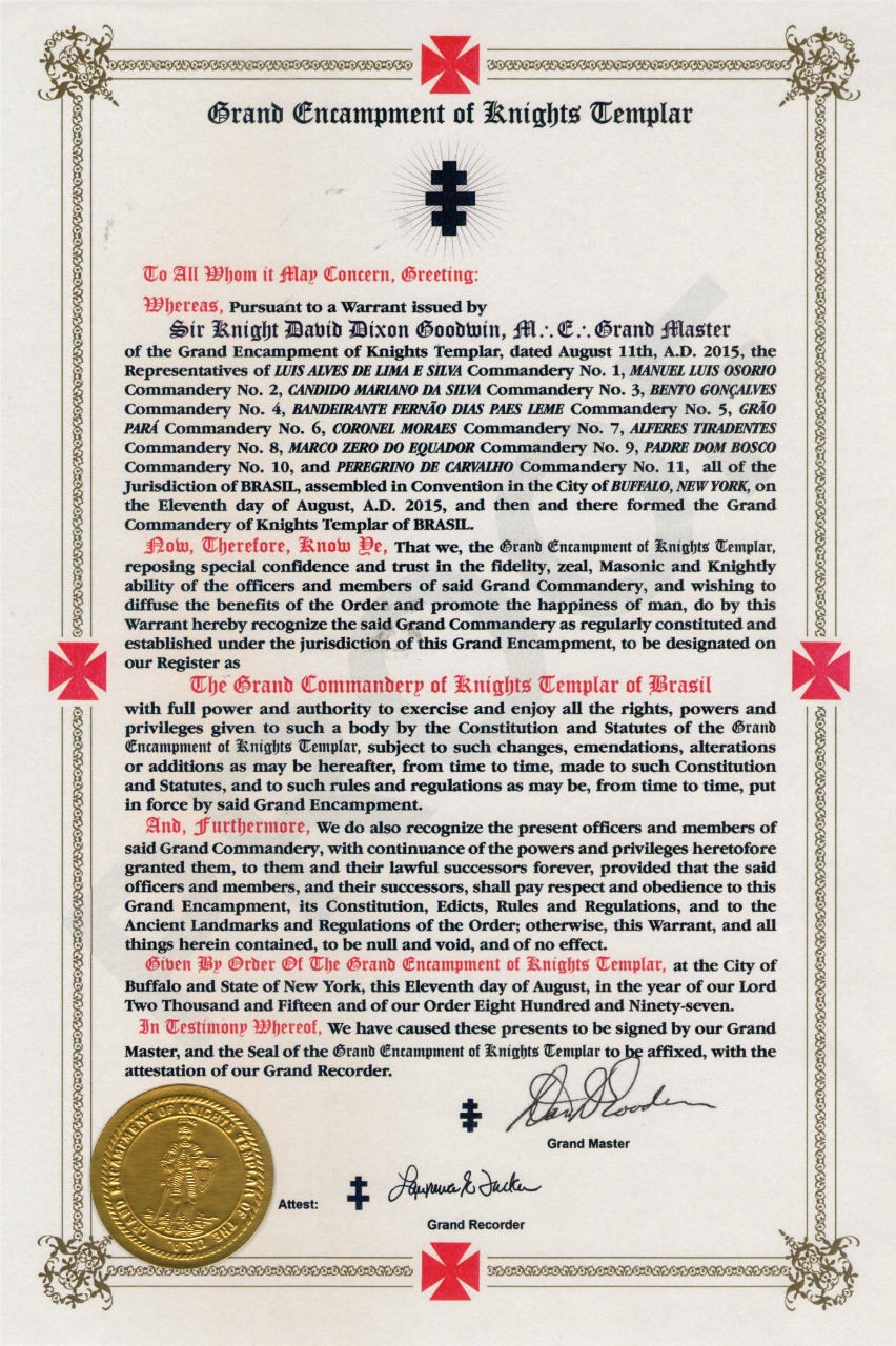 2015 - Carta Definitiva da Grande Comanderia de Cavaleiros Templários do Brasil